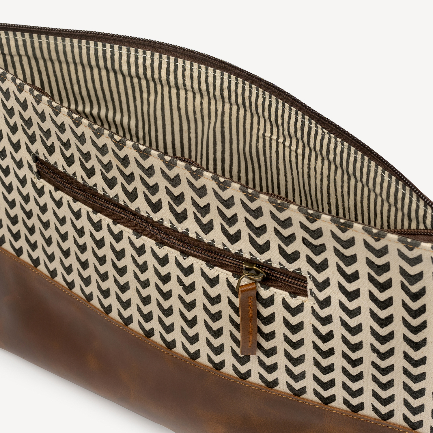 Material: Top-grain Water Buffalo Leather with block-printed canvas.